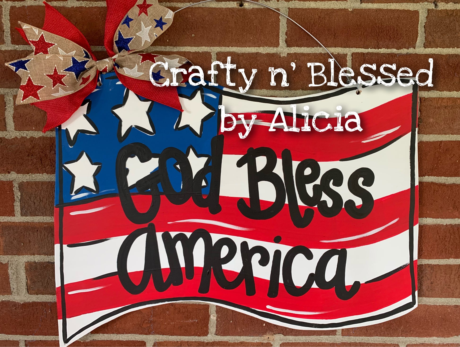 They are hand painted on 1/2” plywood with acrylic paint and sealed with a clear gloss. Ribbon may vary depending on availability.