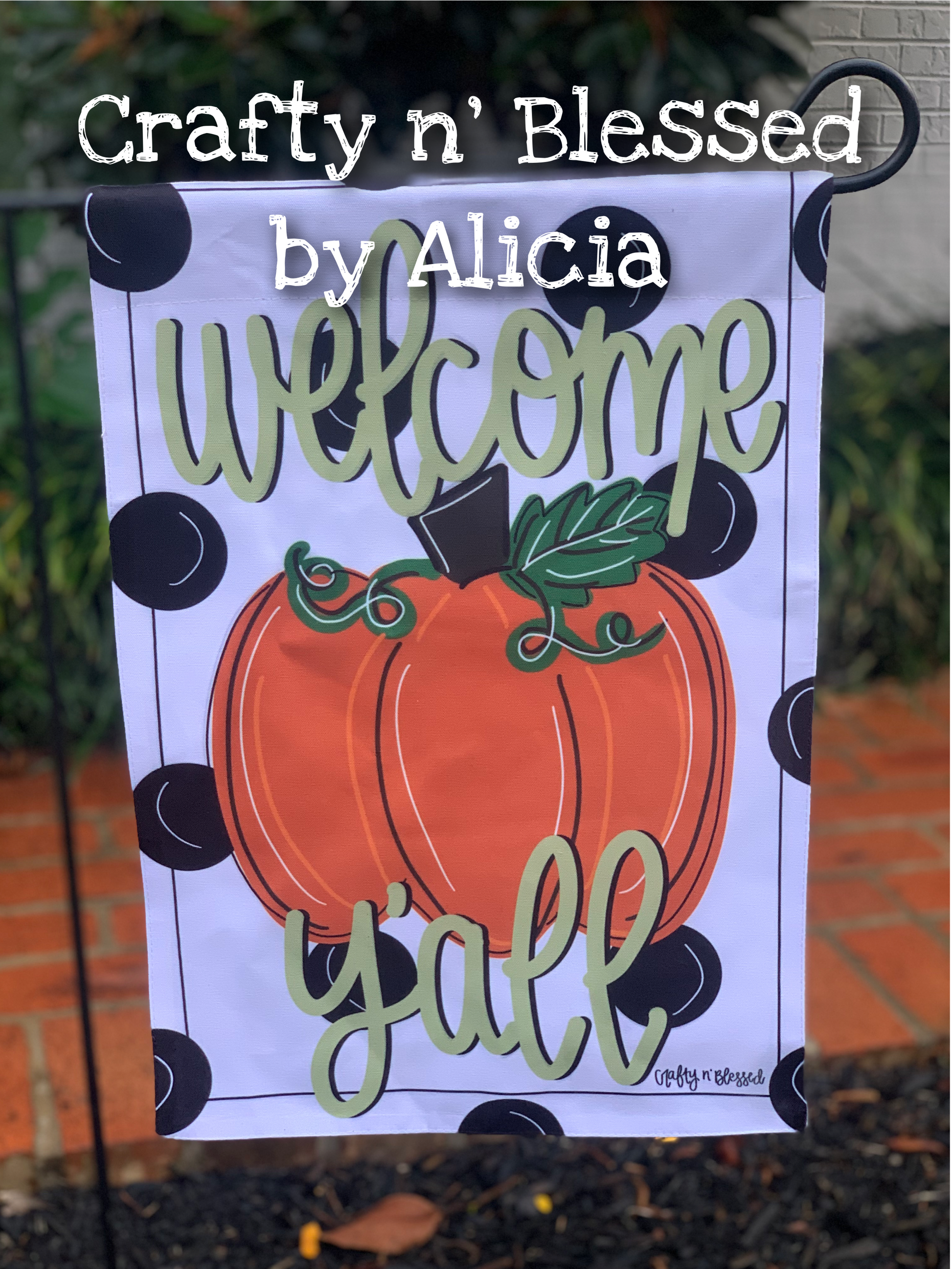Welcome Y’all Pumpkin Polka Dot Garden Flag
