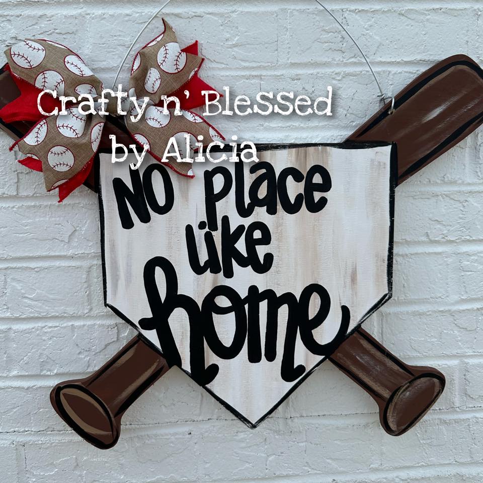 This home plate measures approx 22" tall and hand painted on 1/2” plywood with acrylic paint and sealed with a clear gloss. Ribbon may vary depending on availability. If wanting to change the softball to baseball, please note that in the customization!
