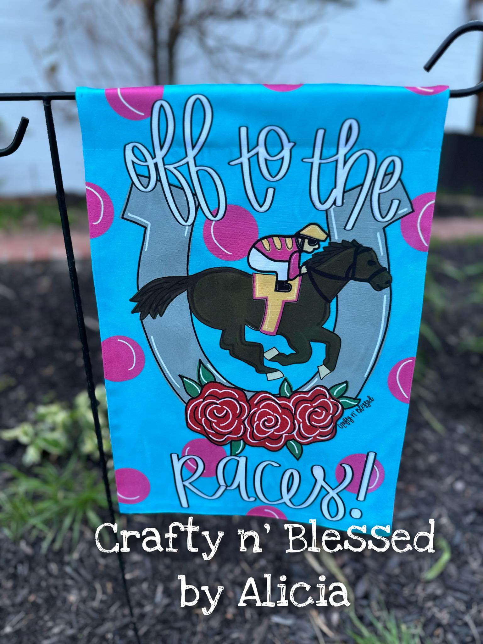 Off to the Races Garden Flag