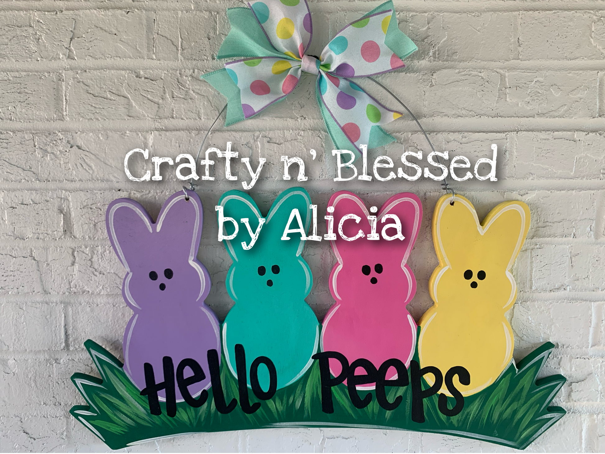 This is a listing for a Peeps Door Hanger as pictured. It measures 23" wide and CAN be customized! You can personalize the wording or change the color scheme.