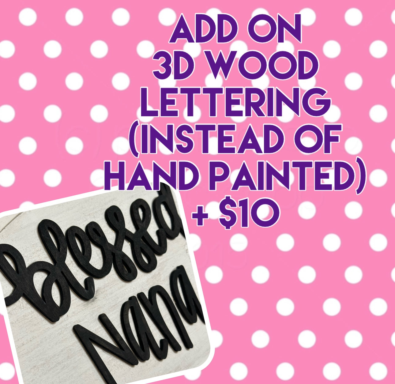 Order it Finished but with 3D wood lettering glued on $60
